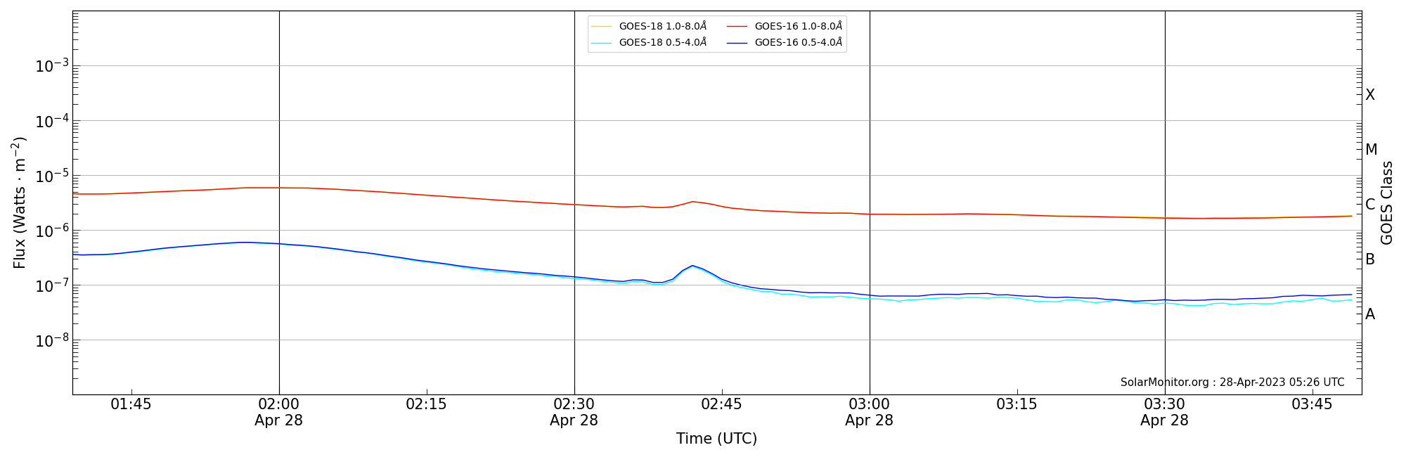 | 2023-04-28T02:39:00 | 02:42:00 | 02:50:00 | -23, 4 | 13288 | C3.3 | HEK : SSW Latest Events |