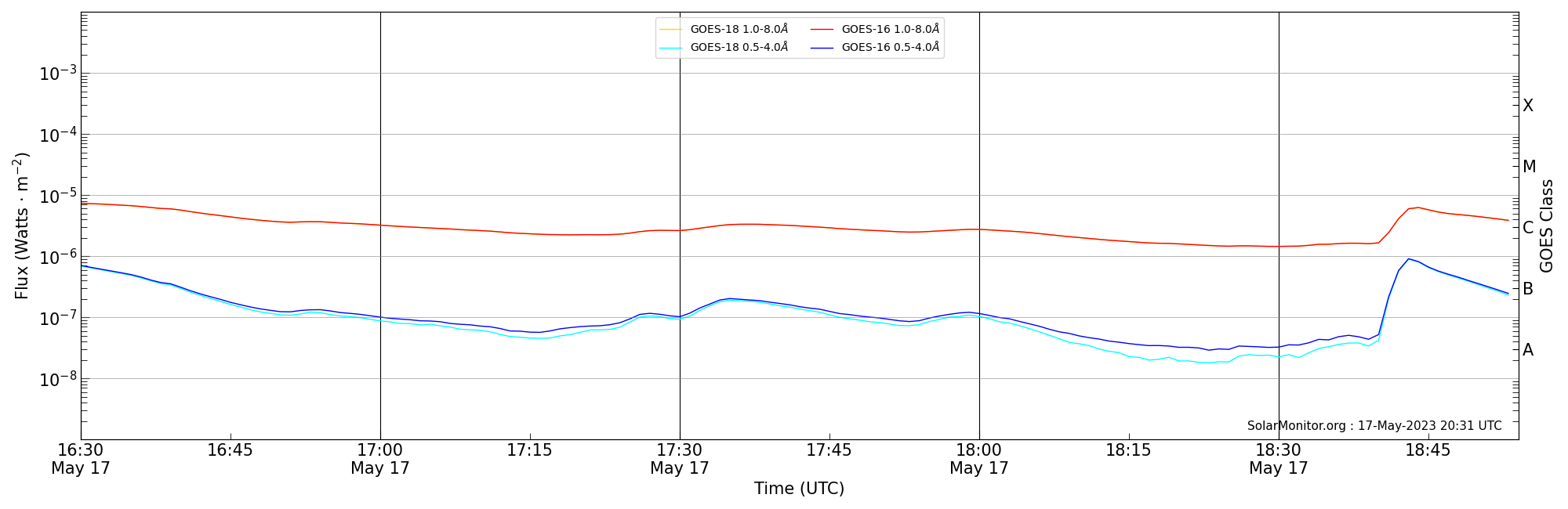 | 2023-05-17T17:30:00 | 17:37:00 | 17:54:00 | 18, -88 | None | C3.3 | HEK : SSW Latest Events |