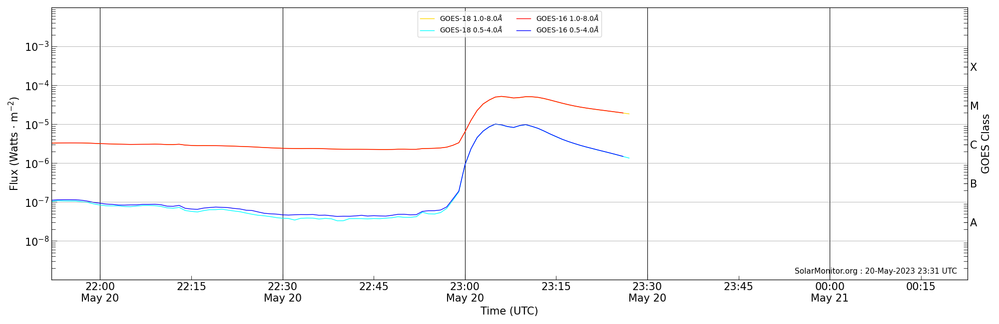 | 2023-05-20T22:52:00 | 23:06:00 | 23:28:39 | 18, -48 | 13311 | M5.2 | HEK : SSW Latest Events |