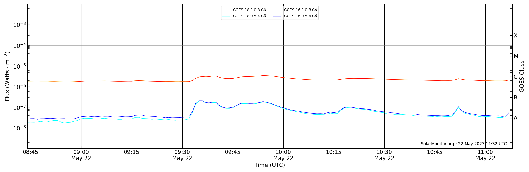 | 2023-05-22T09:44:00 | 09:54:00 | 10:08:00 | 18, -30 | 13311 | C3.4 | HEK : SSW Latest Events |