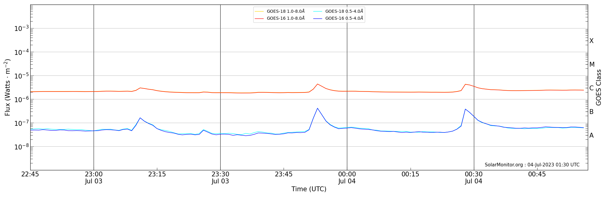 | 2023-07-03T23:45:00 | 23:53:00 | 23:57:00 | 15, 71 | 13354 | C4.4 | HEK : SSW Latest Events |