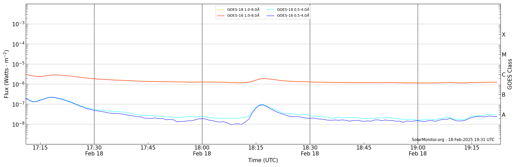 | 2025-02-18T18:11:00 | 18:17:00 | 18:23:00 | -6, 89 | 13992 | C1.8 | HEK : SSW Latest Events |