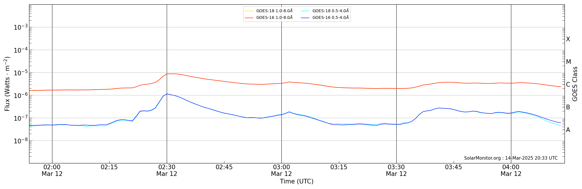 | 2025-03-12T02:54:00 | 03:02:00 | 03:14:00 | 16, -67 | None | C3.8 | HEK : SSW Latest Events |