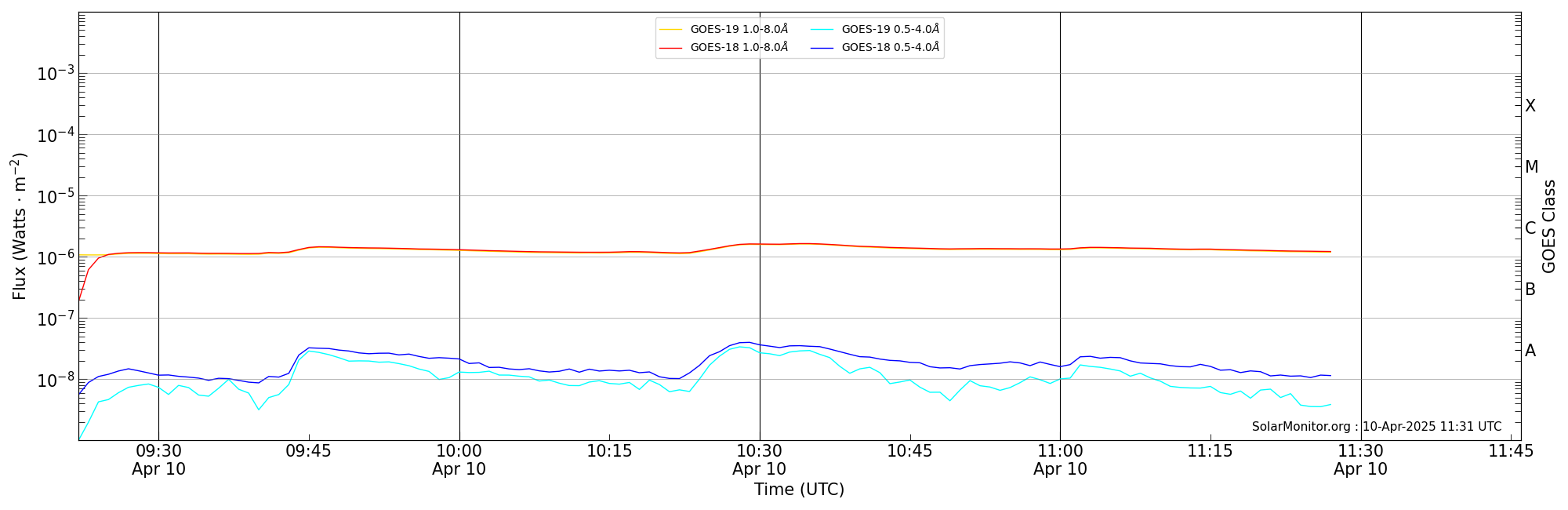 | 2025-04-10T10:22:00 | 10:34:00 | 10:46:00 | -12, -10 | None | C1.6 | HEK : SSW Latest Events |
