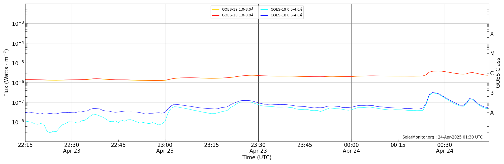 | 2025-04-23T23:15:00 | 23:28:00 | 23:44:13 | -13, -27 | 14070 | C2.3 | HEK : SSW Latest Events |