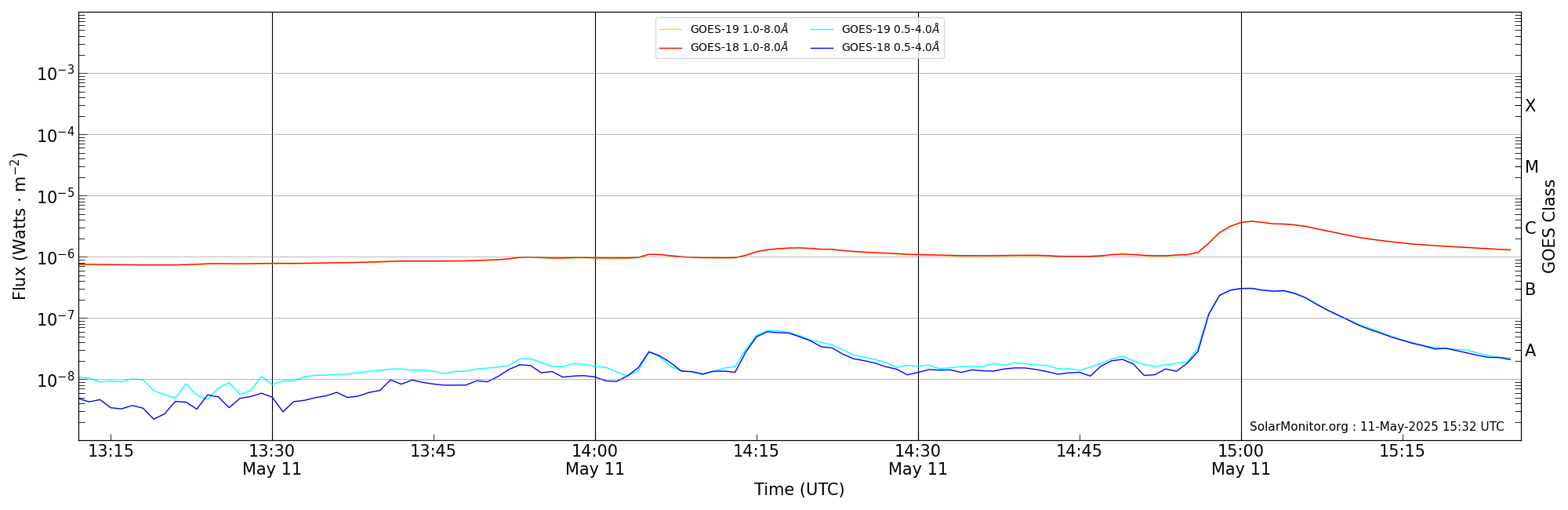 | 2025-05-11T14:12:00 | 14:19:00 | 14:26:00 | 10, 89 | 14079 | C1.3 | HEK : SSW Latest Events |