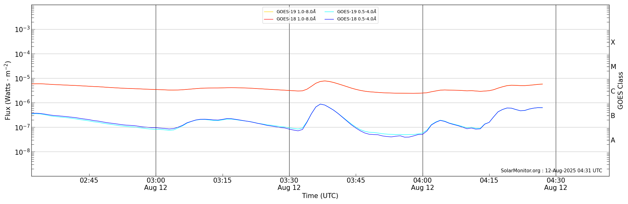 | 2025-08-12T03:32:00 | 03:38:00 | 03:42:00 | 9, -89 | None | C7.7 | HEK : SSW Latest Events |