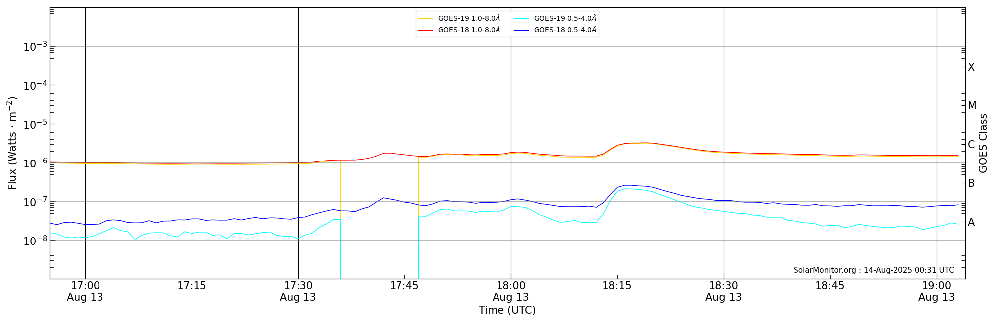 | 2025-08-13T17:55:00 | 18:01:00 | 18:04:00 | 8, 72 | 14178 | C1.8 | HEK : SSW Latest Events |