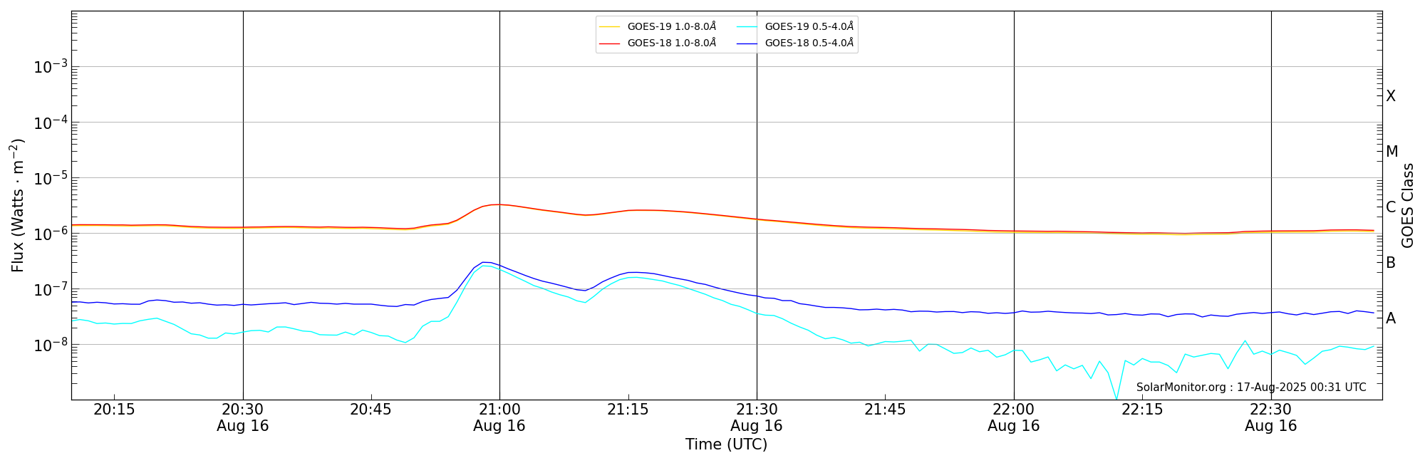 | 2025-08-16T21:10:00 | 21:16:00 | 21:43:00 | 8, 89 | 14178 | C2.6 | HEK : SSW Latest Events |