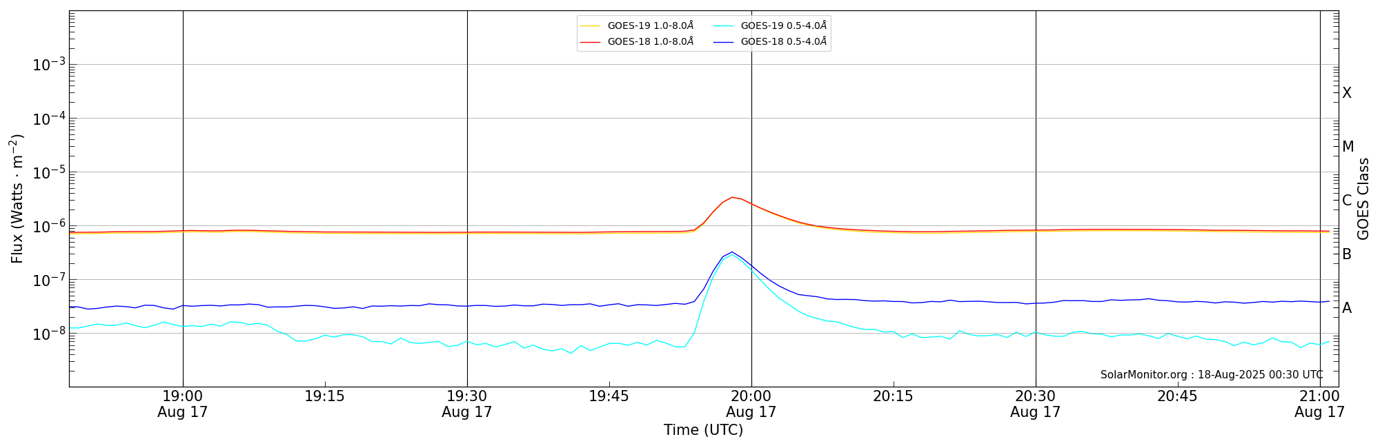 | 2025-08-17T19:48:00 | 19:58:00 | 20:02:00 | -2, 11 | 14180 | C3.3 | HEK : SSW Latest Events |