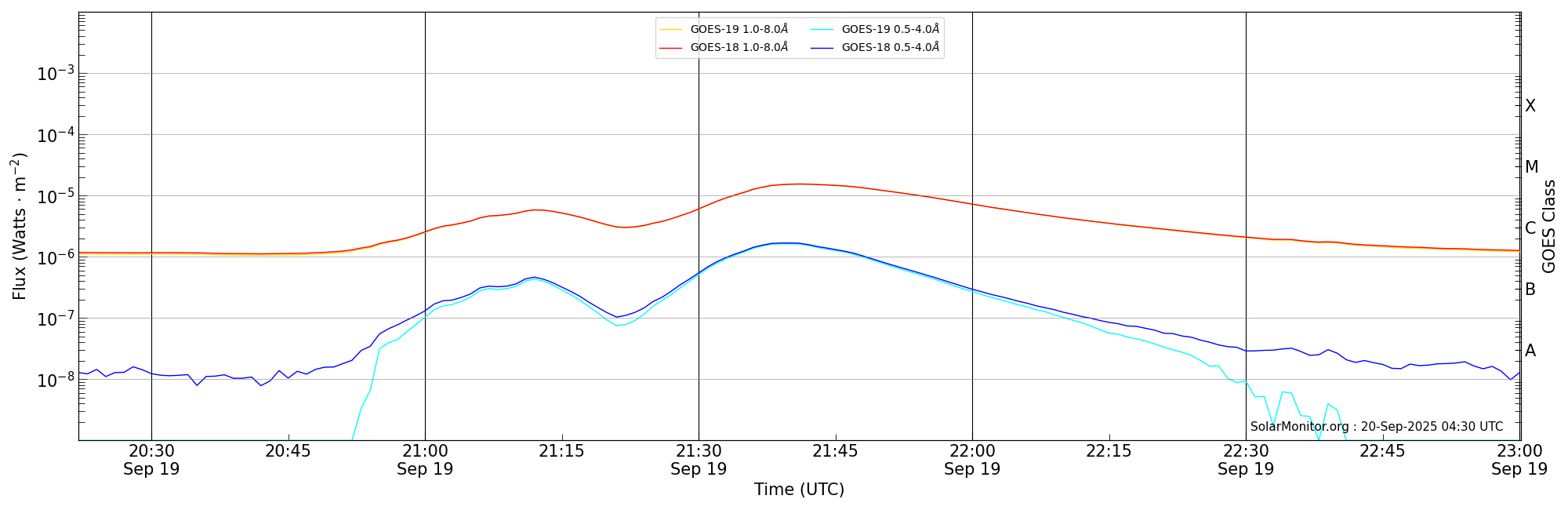 | 2025-09-19T21:22:00 | 21:41:00 | 22:00:09 | 7, 25 | 14216 | M1.5 | HEK : SSW Latest Events |