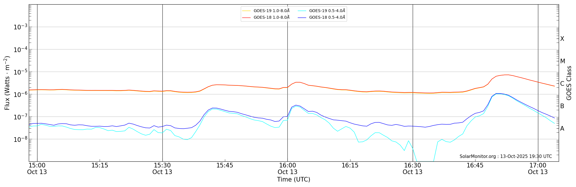| 2025-10-13T15:58:00 | 16:02:00 | 16:05:00 | 23, 25 | 14246 | C3.4 | HEK : SSW Latest Events |