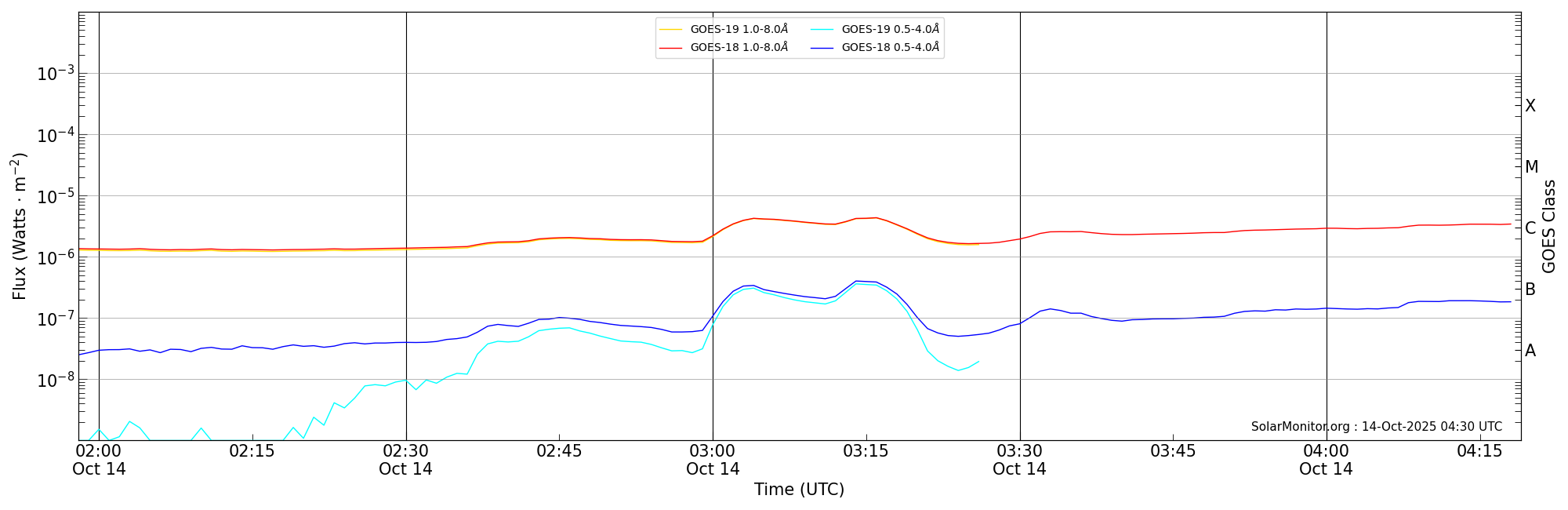 | 2025-10-14T02:58:00 | 03:16:00 | 03:19:00 | 24, 33 | 14246 | C4.3 | HEK : SSW Latest Events |