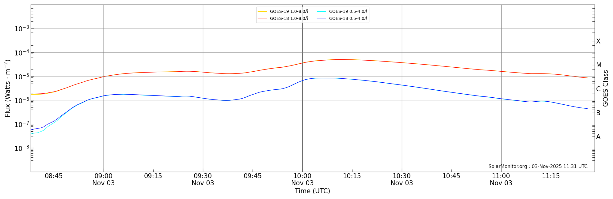 | 2025-11-03T09:38:00 | 10:11:00 | 10:28:12 | 22, -84 | None | M5.0 | HEK : SSW Latest Events |