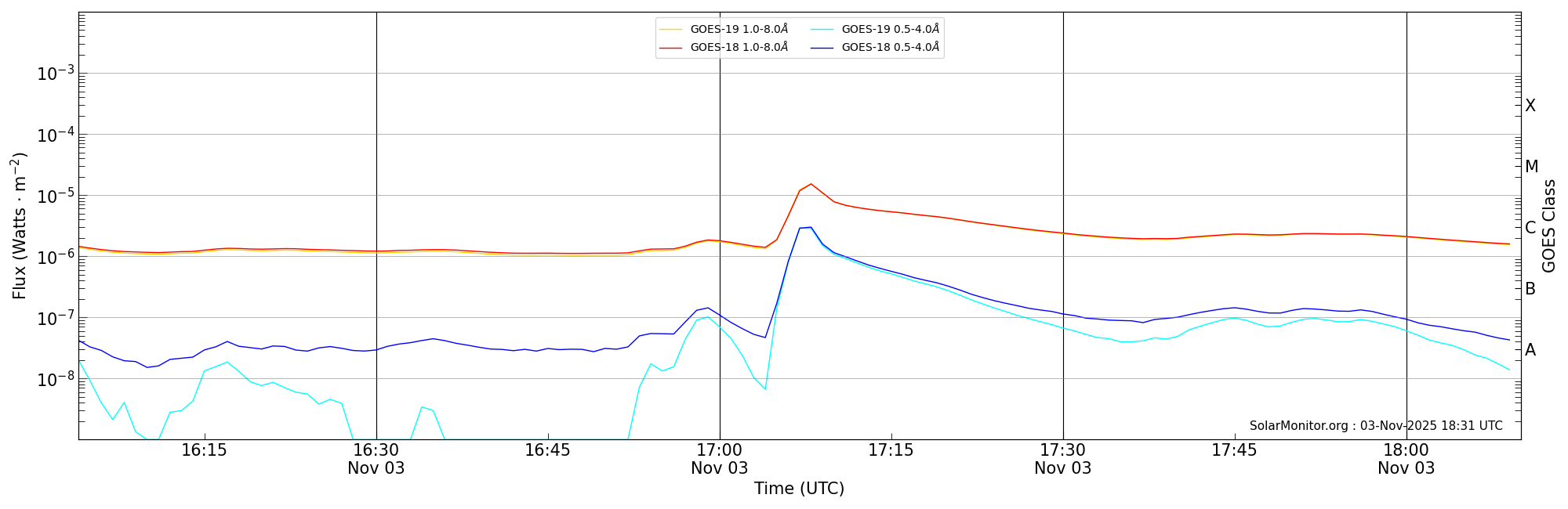| 2025-11-03T17:04:00 | 17:08:00 | 17:10:00 | 24, -70 | 14272 | M1.5 | HEK : SSW Latest Events |