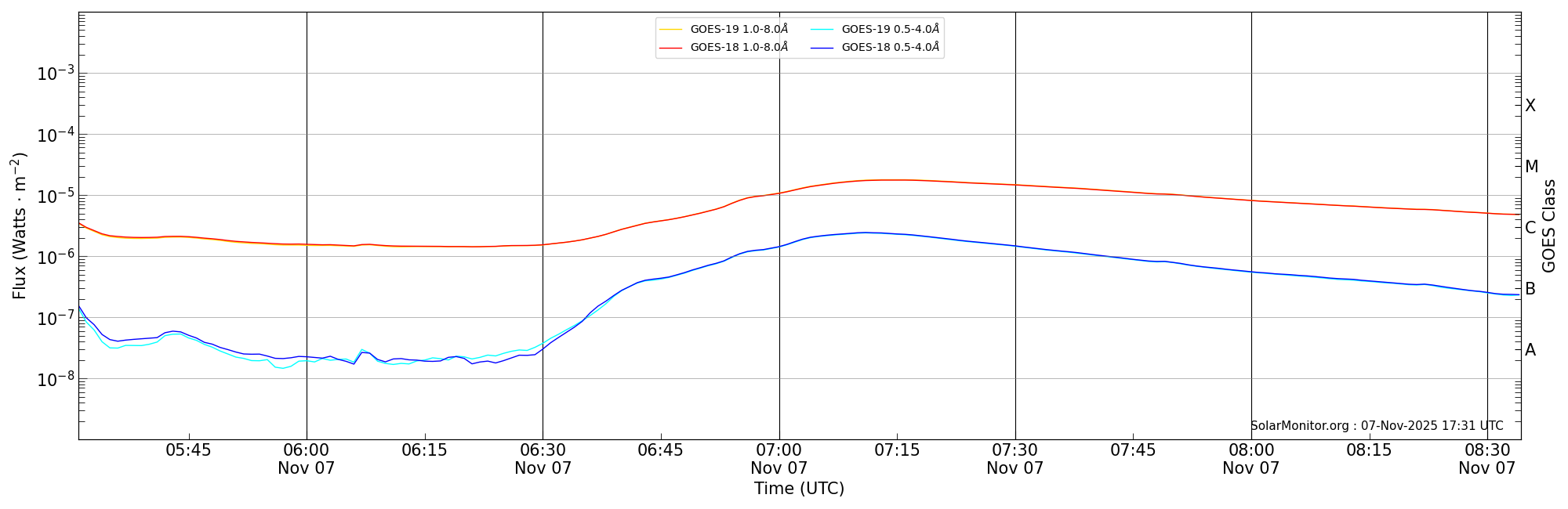 | 2025-11-07T06:31:00 | 07:16:00 | 07:34:15 | 22, -27 | 14274 | M1.8 | HEK : SSW Latest Events |