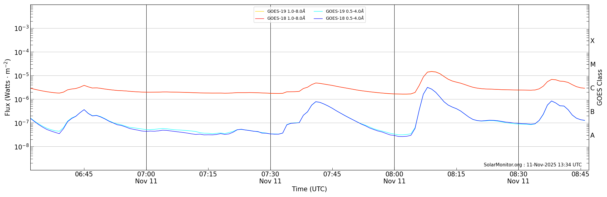 | 2025-11-11T07:32:00 | 07:41:00 | 07:47:00 | 22, 24 | 14274 | C4.8 | HEK : SSW Latest Events |
