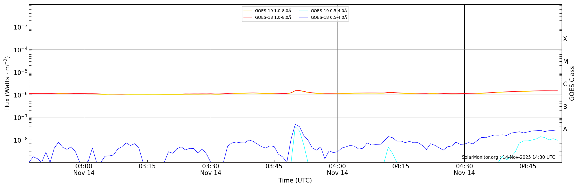 | 2025-11-14T03:47:00 | 03:51:00 | 03:53:00 | -18, 33 | 14276 | C1.4 | HEK : SSW Latest Events |