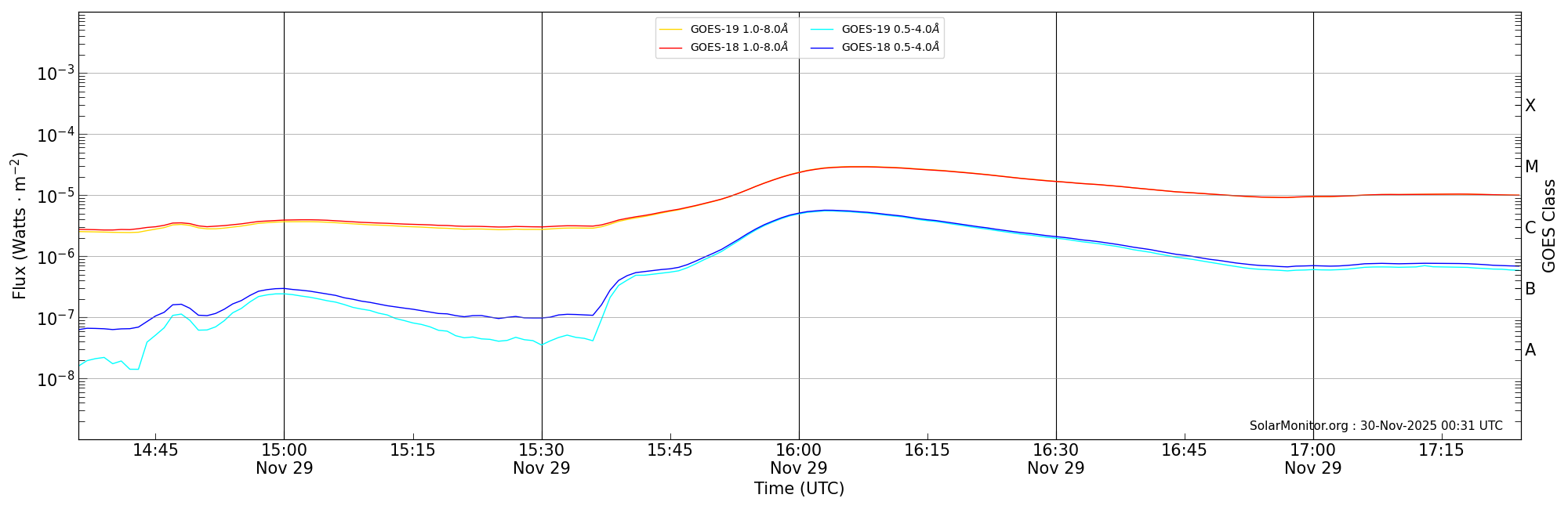 | 2025-11-29T15:36:00 | 16:07:00 | 16:24:14 | 20, -89 | None | M2.9 | HEK : SSW Latest Events |