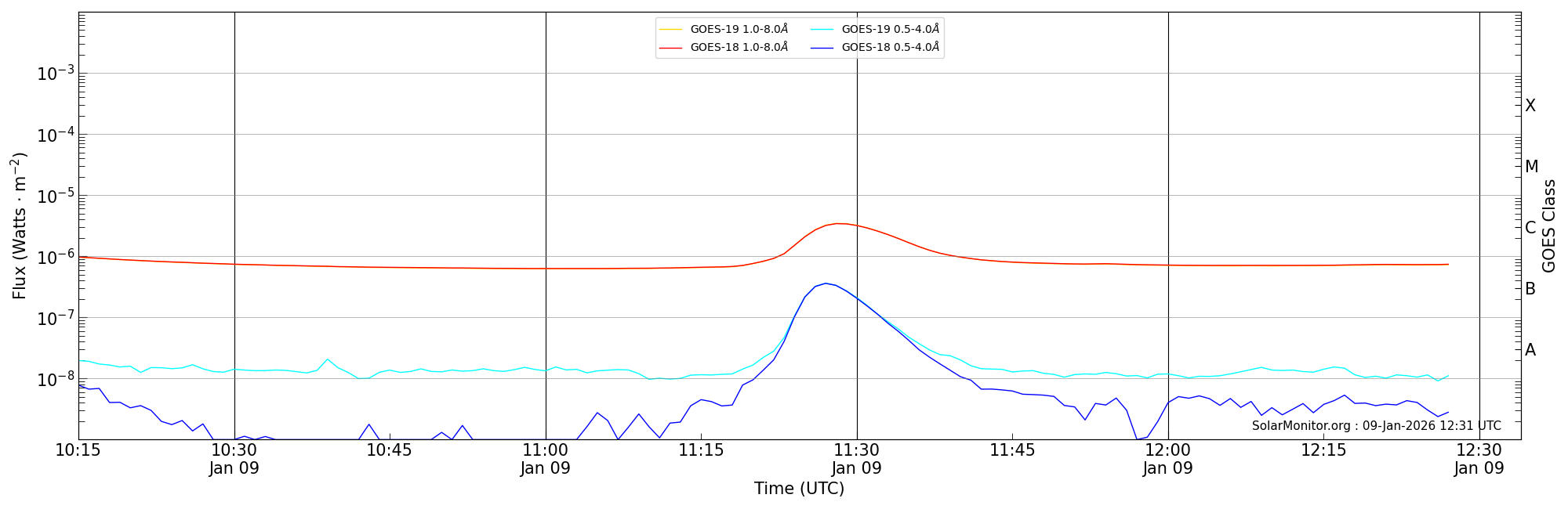 | 2026-01-09T11:15:00 | 11:28:00 | 11:34:00 | -12, -29 | 14336 | C3.4 | HEK : SSW Latest Events |