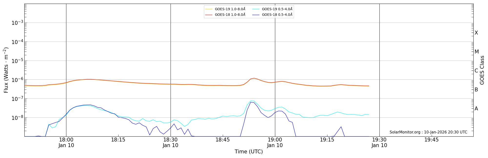 | 2026-01-10T18:48:00 | 18:54:00 | 18:57:00 | -9, -1 | 14336 | C1.2 | HEK : SSW Latest Events |