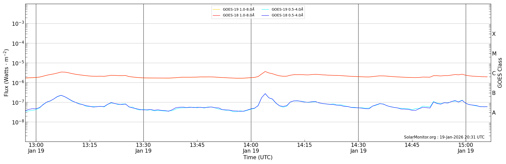 | 2026-01-19T13:57:00 | 14:04:00 | 14:07:00 | -18, -17 | 14345 | C3.6 | HEK : SSW Latest Events |