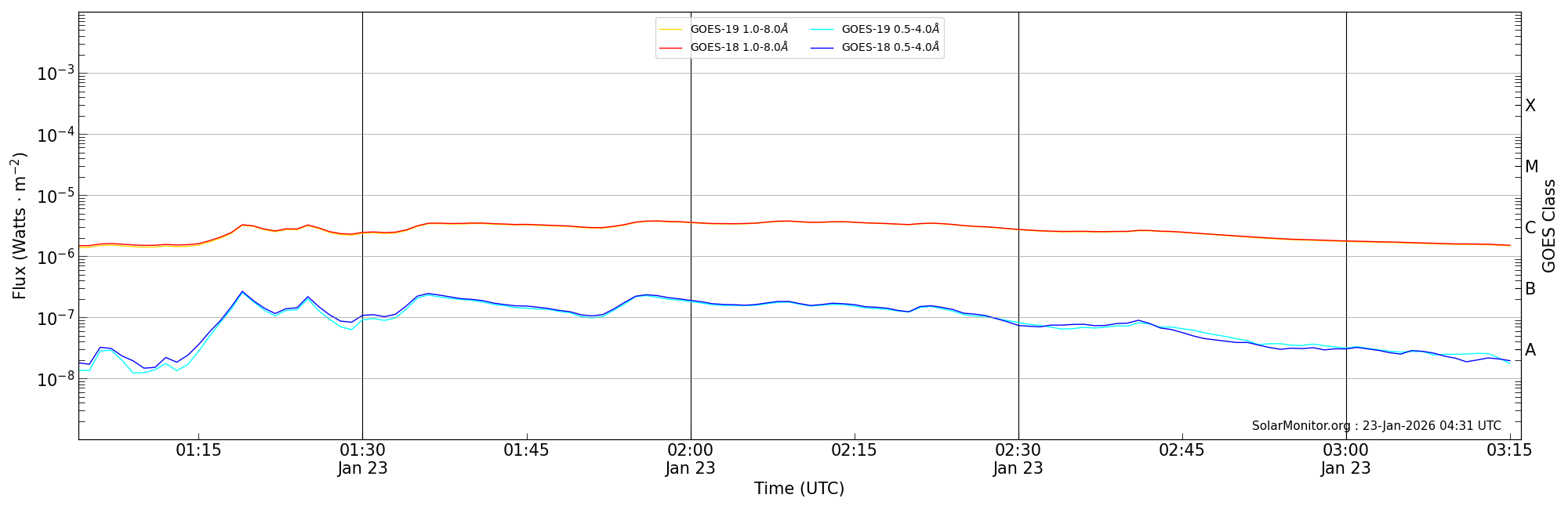 | 2026-01-23T02:04:00 | 02:09:00 | 02:16:00 | -5, -8 | 14351 | C3.7 | HEK : SSW Latest Events |