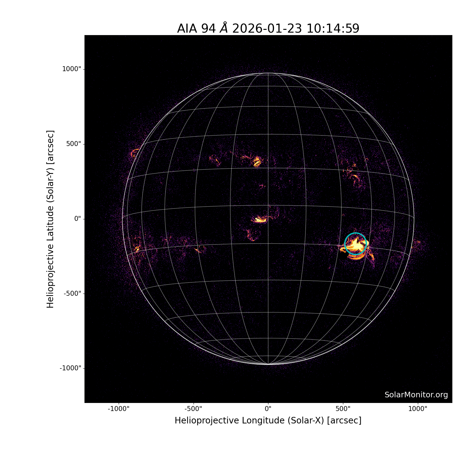 | 2026-01-23T10:05:00 | 10:15:00 | 10:22:00 | -14, 38 | 14341 | C2.5 | HEK : SSW Latest Events |