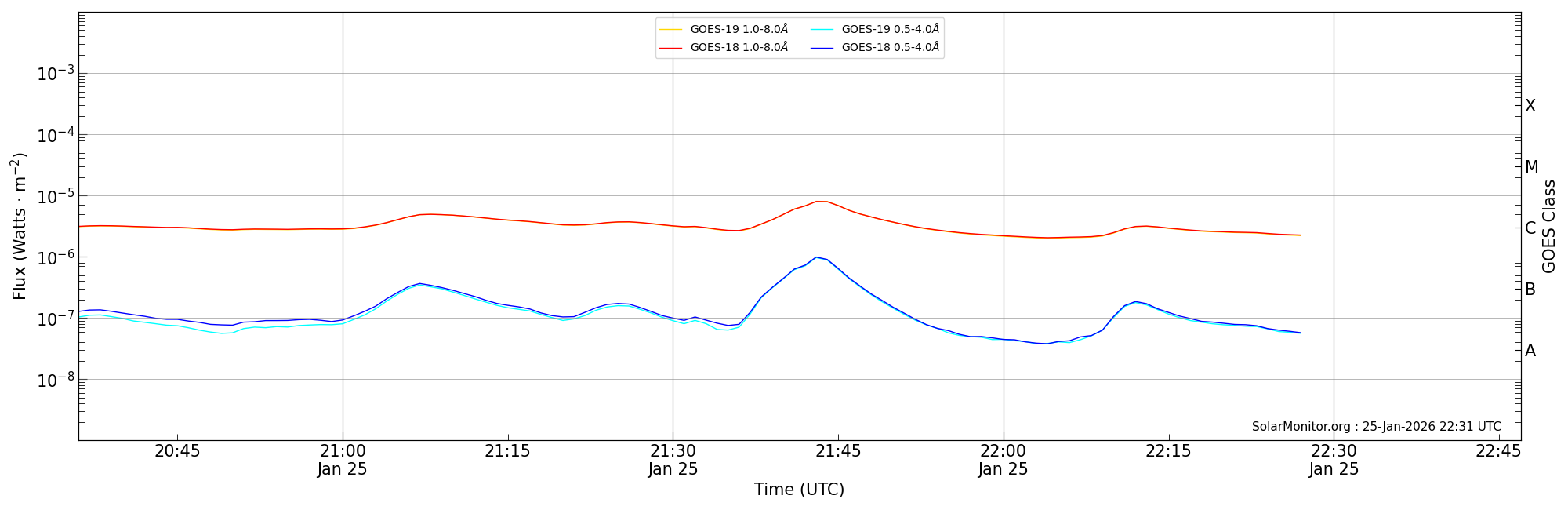 | 2026-01-25T21:36:00 | 21:43:00 | 21:47:00 | 18, 69 | 14342 | C7.9 | HEK : SSW Latest Events |