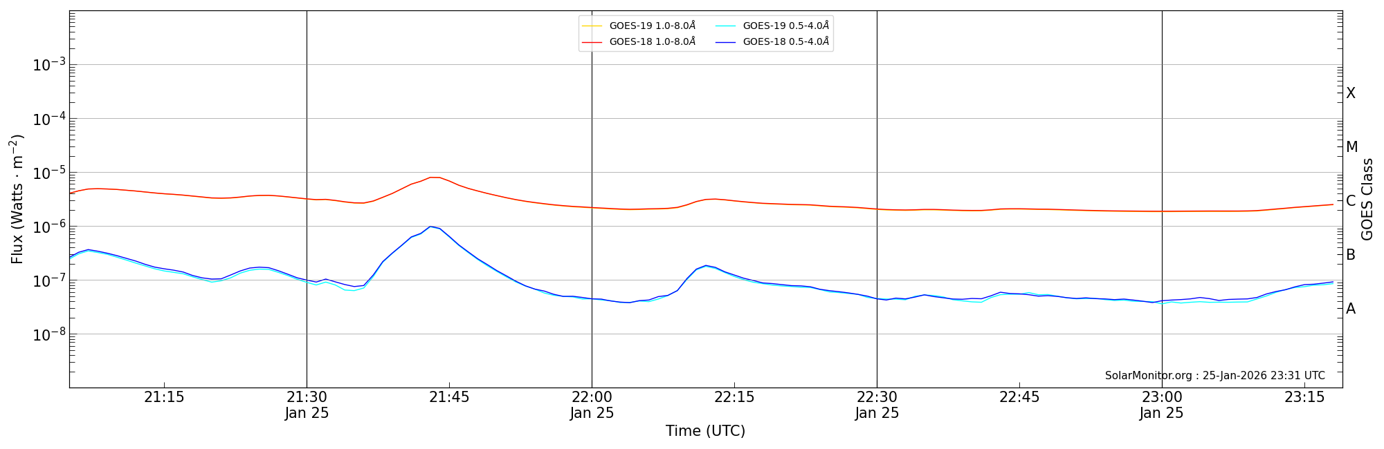 | 2026-01-25T22:05:00 | 22:13:00 | 22:19:00 | -15, 4 | 14349 | C3.1 | HEK : SSW Latest Events |