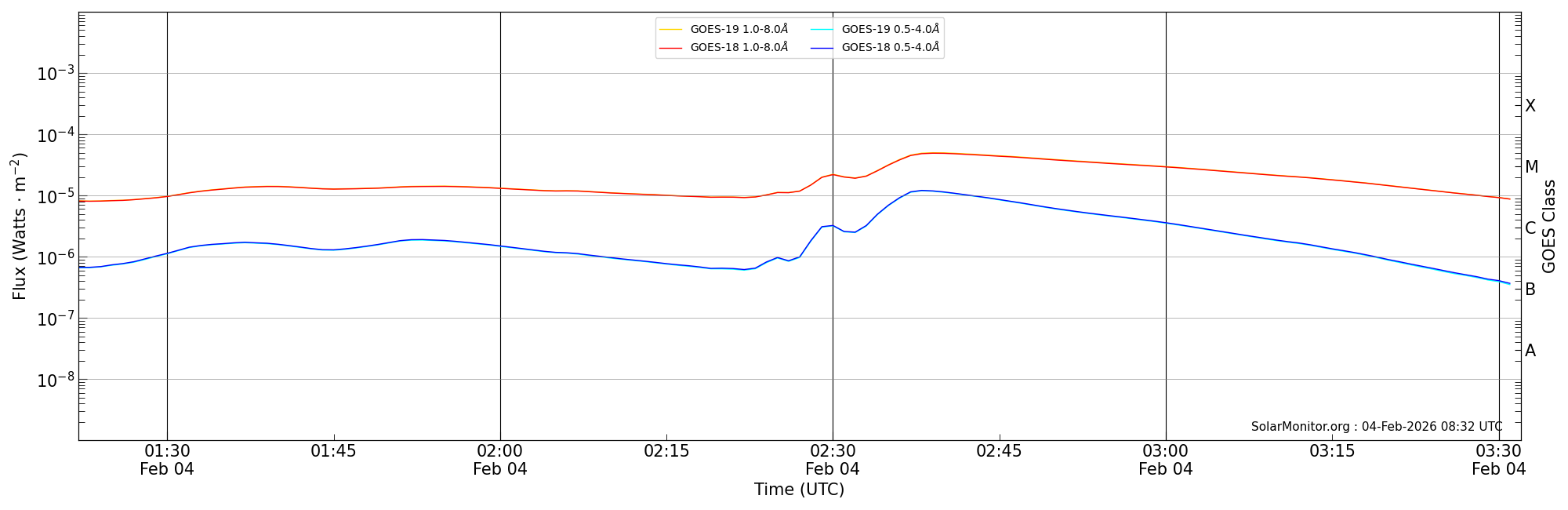 | 2026-02-04T02:22:00 | 02:30:00 | 02:32:00 | 13, -4 | 14366 | M2.1 | HEK : SSW Latest Events |