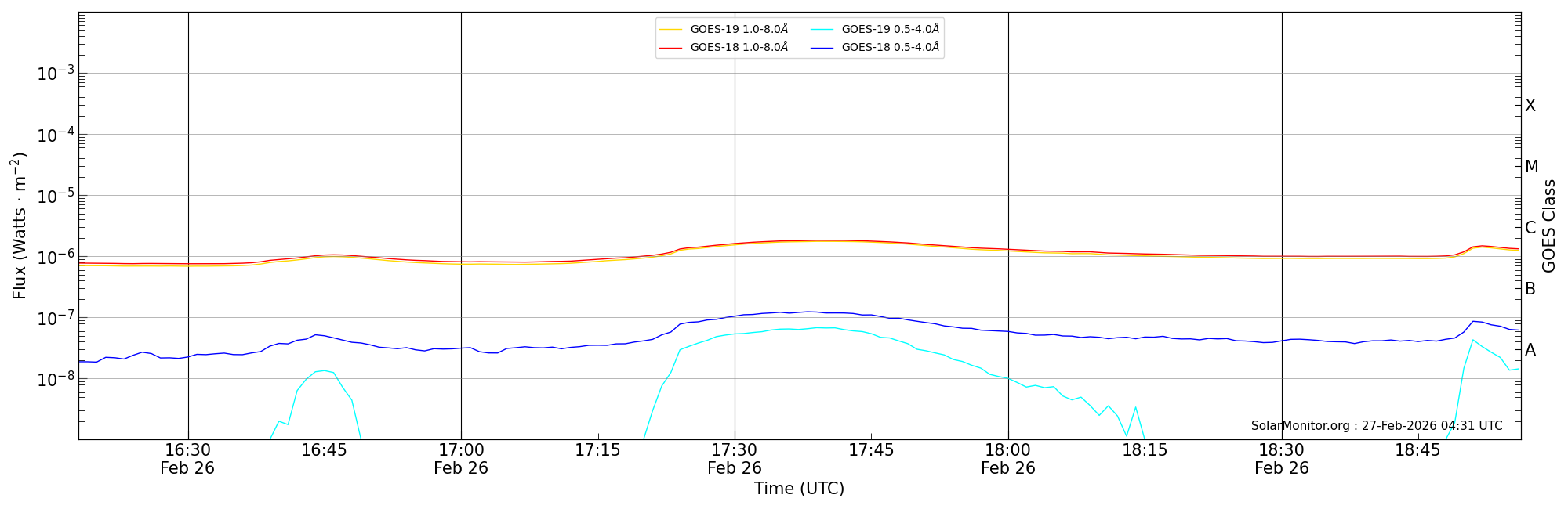 | 2026-02-26T17:18:00 | 17:39:00 | 17:56:16 | -15, -77 | 14379 | C1.8 | HEK : SSW Latest Events |