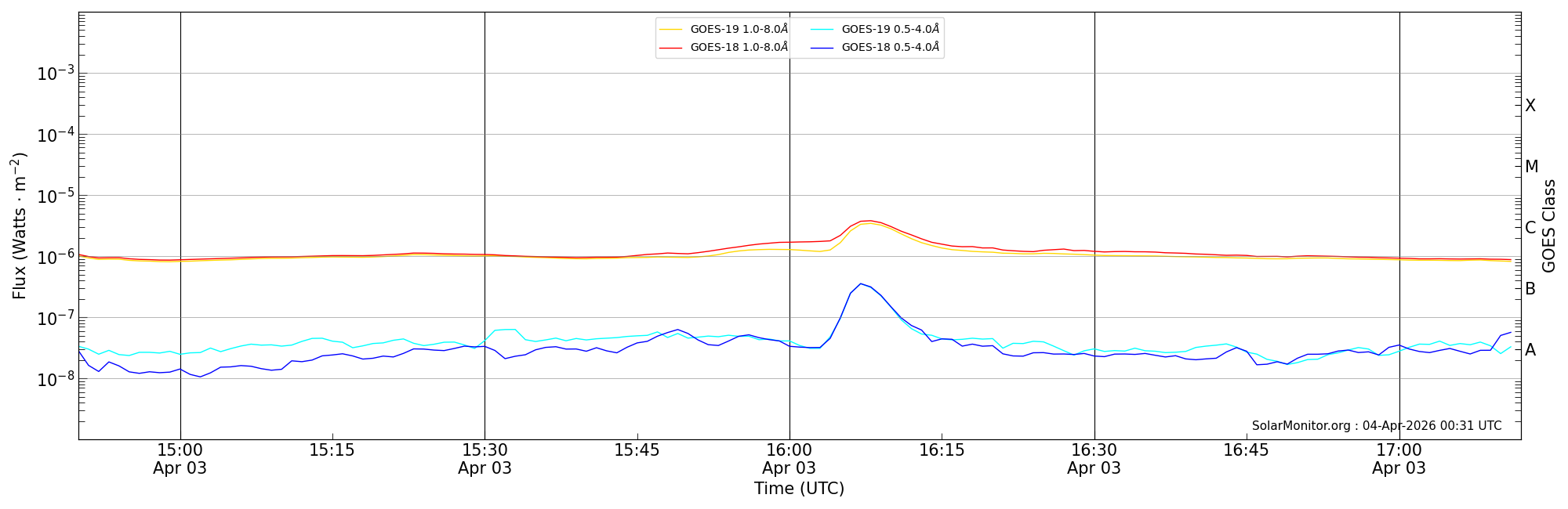 | 2026-04-03T15:50:00 | 16:08:00 | 16:12:00 | 0, -2 | 14409 | C3.8 | HEK : SSW Latest Events |