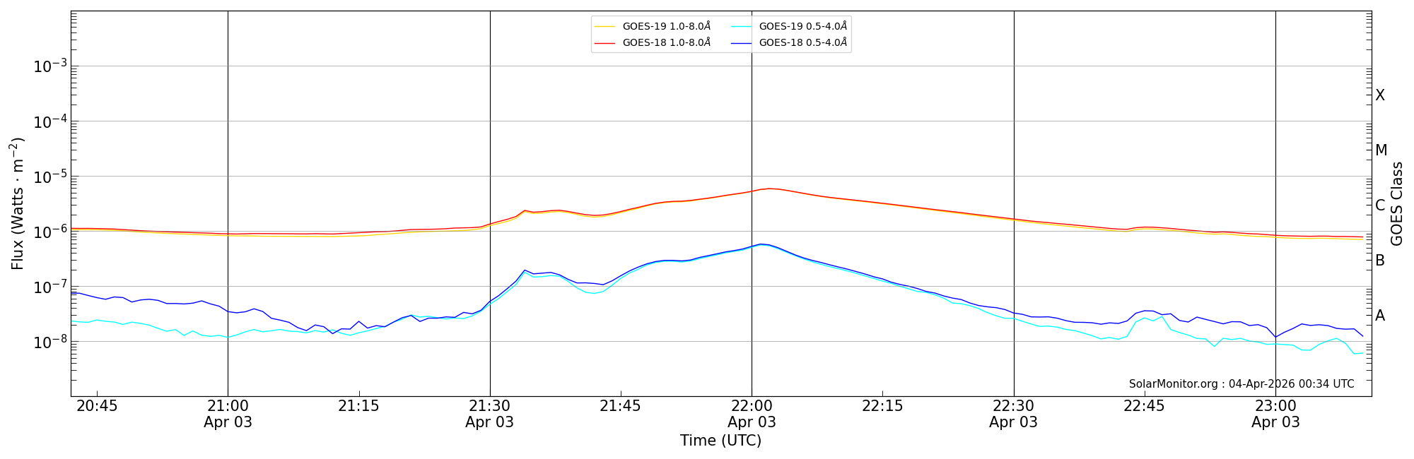 | 2026-04-03T21:42:00 | 22:02:00 | 22:11:00 | 2, 0 | 14409 | C5.8 | HEK : SSW Latest Events |