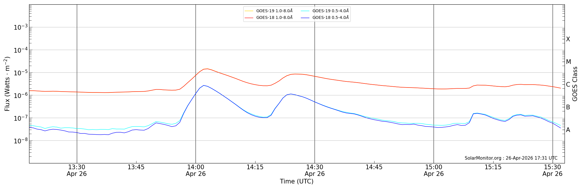 | 2026-04-26T14:18:00 | 14:25:00 | 14:33:00 | 6, -57 | 14425 | C8.4 | HEK : SSW Latest Events |