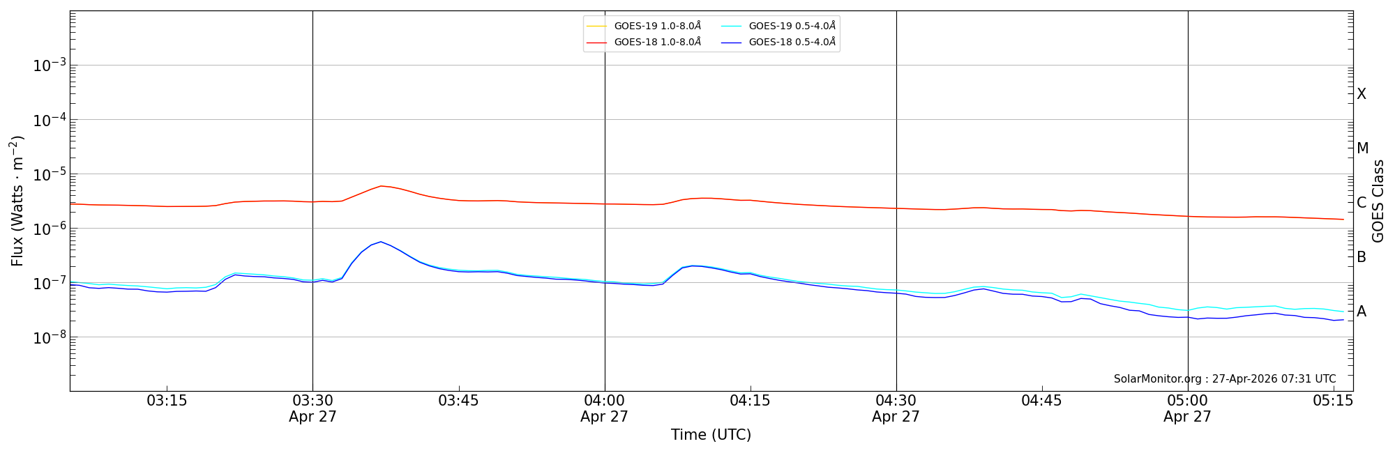 | 2026-04-27T04:05:00 | 04:10:00 | 04:17:00 | 15, 21 | 14420 | C3.5 | HEK : SSW Latest Events |