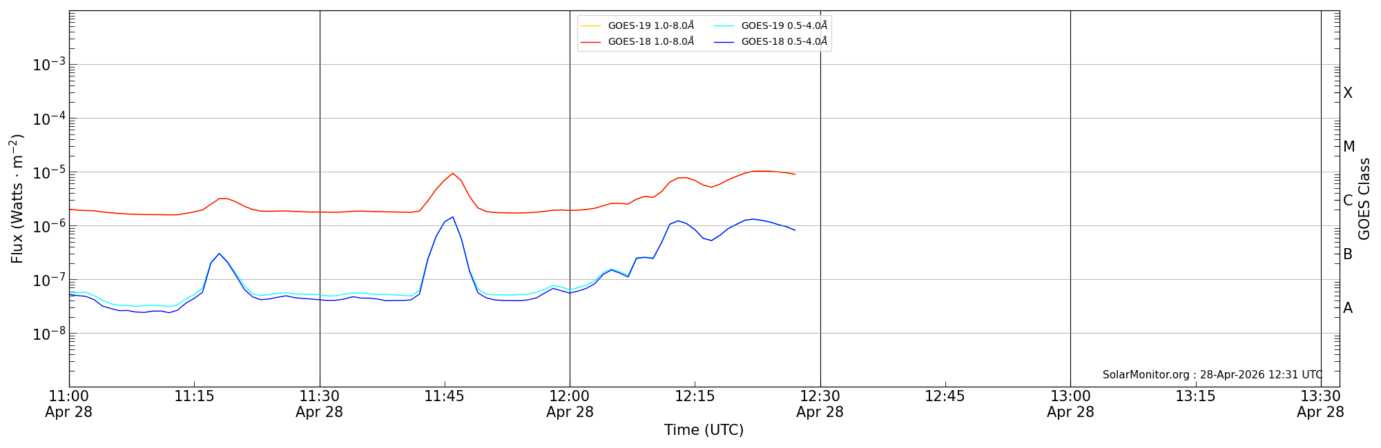 | 2026-04-28T12:00:00 | 12:14:00 | 12:32:15 | 15, 40 | 14420 | C7.7 | HEK : SSW Latest Events |