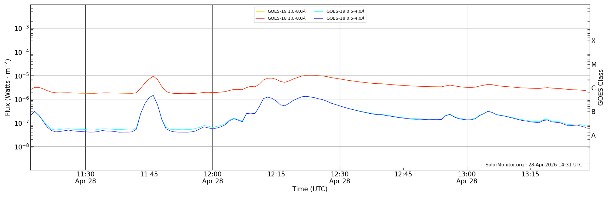 | 2026-04-28T12:17:00 | 12:23:00 | 12:29:00 | 14, 37 | 14420 | M1.0 | HEK : SSW Latest Events |